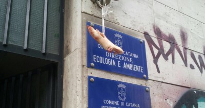 Gli agenti della Digos della Questura etnea indagano sul ritrovamento davanti agli uffici dell’assessorato comunale all’Ecologia, in via Pulvirenti 4, a Catania, di una zampa di maiale mozzata.
