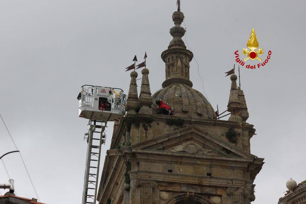 Intanto i vigili del fuoco lo scorso 5 aprile hanno effettuato degli interventi per eliminare l’imminente pericolo. Oltre alla squadra di Caltagirone, considerata l’altezza del campanile, utilizzata un’autoscala di 42 metri. Intervenuto anche il personale Saf, colleghi pompieri della squadra specializzata speleo alpino fluviali. Ultimati i lavori, l’area inibita al passaggio pedonale e veicolare dopo un’ordinanza del Comune per ovvie ragioni di sicurezza.