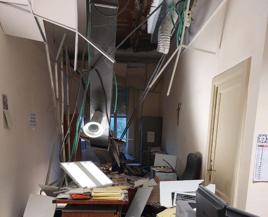 La scoperta è stata fatta questa mattina all’apertura degli uffici. Il crollo, secondo una prima ricostruzione da parte dei vigili del fuoco che sono intervenuti, è avvenuto dopo la chiusura, quando nessuno era all’interno. Pertanto, non ci sono feriti.