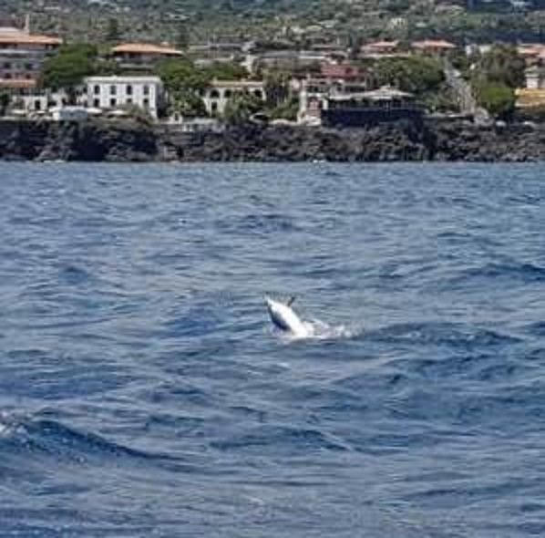 Lui, un cucciolo di pesce spada, ha trascorso la sua ‘giornata’ a giocare nel mare della Scogliera di Catania.
