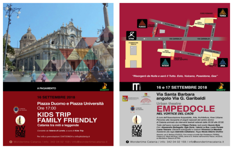 All’interno della manifestazione di arte diffusa WonderTime Catania, Kids Trip propone un appuntamento per andare alla scoperta di Catania con i bambini accompagnati da Valeria Di Loreto Tour Guide (guida professionale con tesserino), una super guida kids friendly !