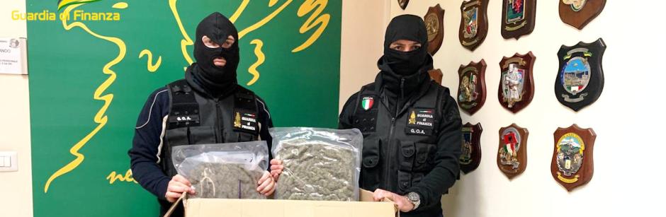 Anche in questo caso scattavano controllo e perquisizione nei confronti dei due giovani di 21 e 19 anni. La Guardia di Finanza rinveniva, così, tre borsoni contenenti confezioni e buste di sostanza stupefacente del tipo marijuana per un peso di 7,5 kg nonché 17 panetti di hashish per un peso di 1 kg e diversi bilancini.