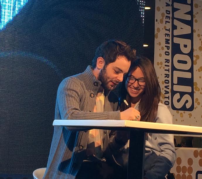 Detto-fatto. La maestra Mariella, rientrata stamani in Sicilia per le vacanze pasquali, si è precipitata da Etnapolis e si è messa in fila per conquistare la dedica di Lorenzo per i suoi piccoli alunni. E lui, il giovane talento catanese dalla voce melodiosa e vibrante che incanta grandi e piccoli fan, non si è fatto pregare due volte e si è pure divertito quando è venuto a conoscenza dei “compiti per casa” della maestra Mariella che, anche se è di Catania come Lorenzo Fragola, il popolare cantante lo ha conosciuto solo questa sera a Etnapolis. E, confessa, si è divertita un sacco pur di accontentare i desideri dei suoi alunni.