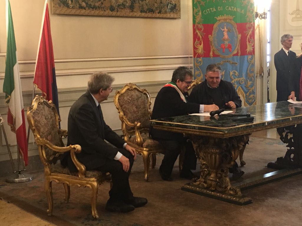 Formalizzato al Palazzo degli Elefanti di Catania, alla presenza del Presidente del Consiglio Paolo Gentiloni, il contratto fra il Comune di Catania e la ditta aggiudicatrice dell’appalto DAMIGA srl per l’avvio dei lavori del cantiere per la ‘Caserma dei Carabinieri – Centro servizi integrato per le imprese’ (area operativa) nell’area industriale di Catania. A firmare il progetto esecutivo è l’IRSAP, Istituto regionale per lo sviluppo delle attività produttive, che ne ha affidato la redazione al progettista, ingegnere Francesco Freni per conto dell’ente, che interviene nella qualità di Rup (Responsabile unico del procedimento) nella persona di Luigi Calabretta, funzionario Direttivo dell’Area Tecnica dell’Irsap. Direttore dei lavori è il geometra Mario Monica.