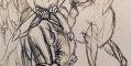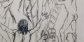 Gli olii su tela che ritraggono figure umane in interni domestici (suo topos stilistico), nature morte, processioni di martiri e un carrettiere a riposo, dialogano con le chine su carta in cui quelli che appaiono abbozzi e appunti presentano già la consistenza del lavoro finito. Ad esempio, gli “studi per la crocefissione” presenti in mostra, sebbene siano solo una parte del lavoro completo, hanno in se stessi una forza e una personalità che pochi artisti, come Guttuso, sono in grado di creare con il solo gesto della propria mano.