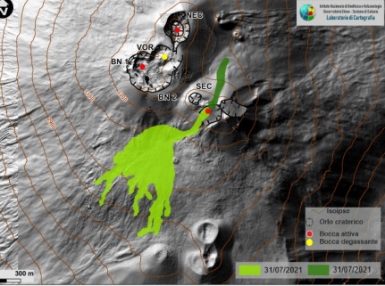 Con i circa 50 episodi parossistici che dal 16 febbraio scorso hanno interessato il cratere di Sud-Est del vulcano, il Monte Etna ha incrementato la sua altezza raggiungendo i 3.357 metri sopra il livello del mare. Gli eventi succedutisi nel 2021 hanno accumulato notevoli quantità di materiale piroclastico e strati di lava sul cono del cratere di Sud-Est, il più giovane e più attivo dei quattro crateri sommitali dell’Etna, portando ad una cospicua trasformazione della sagoma del vulcano.