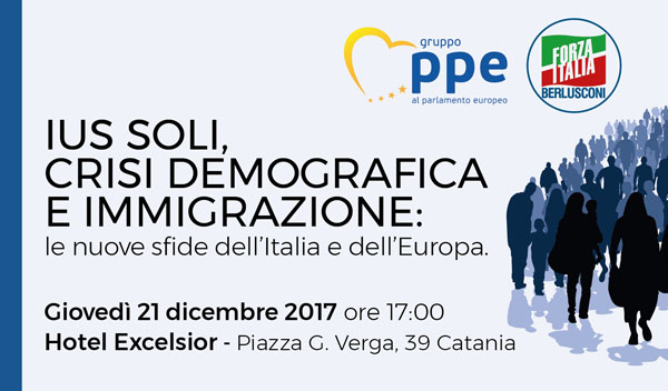 Giovedì 21 dicembre, ore 17:00 hotel Excelsior di Piazza Giovanni Verga, 39 Catania, si terrà il convegno “Ius soli, crisi demografica e immigrazione: le nuove sfide dell’Italia e dell’Europa”.