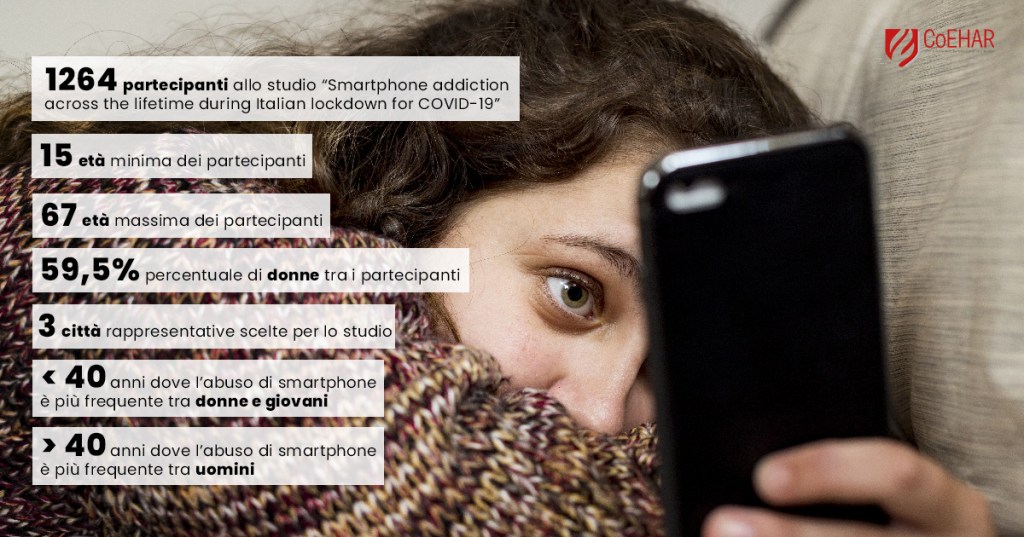 È per questo che un uovo studio, condotto dai ricercatori del CoEHAR dell’Università degli Studi di Catania, in collaborazione con i ricercatori dell’Università La Sapienza di Roma, dal titolo: “Smartphone addiction across the lifetime during Italian lockdown for COVID-19” ha voluto studiare il legame tra età e sesso e utilizzo dello smartphone, per valutare possibili correlazioni tra dipendenza e disturbi mentali.