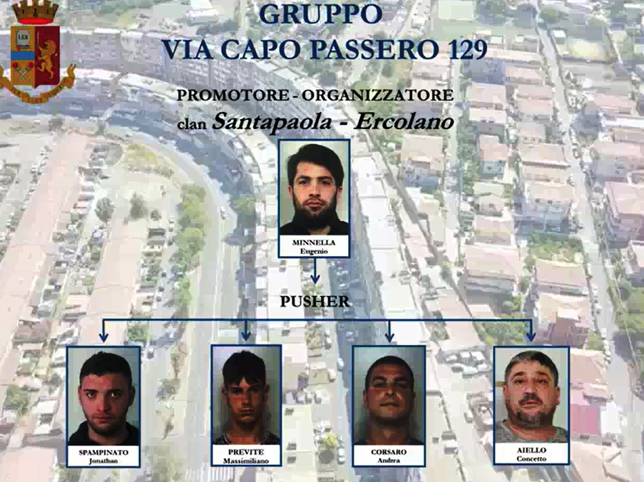 Emanuel Kevin Ferro 22 anni già sottoposto agli arresti domiciliari per altra causa; Francesco Finocchiaro 26 anni; Claudio Natalizio Minnella 53 anni; Eugenio Minnella 28 anni; Salvatore Musumeci 23 anni, già sottoposto agli arresti domiciliari per altra causa; Massimiliano Previte 25 anni; Santo Sapuppo 23 anni; Carmelo Scalia 27 anni; Jonathan Spampinato 25 anni; Damiano Spacarino 28 anni;