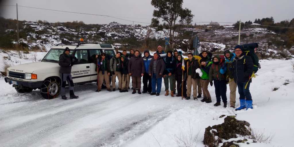Un gruppo di esploratori scout Cngei di Riposto impegnato in un campo nella zona di Montargano (casa Betania) è, invece, rimasto bloccato questa mattina sulla via del ritorno poichè sorpreso da una tormenta di neve.