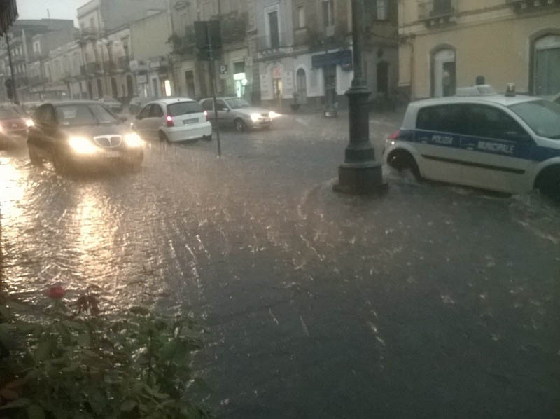 Danni provocati dall’intensa pioggia di ieri sera nel Catanese, dove si sono verificati diversi allagamenti.
