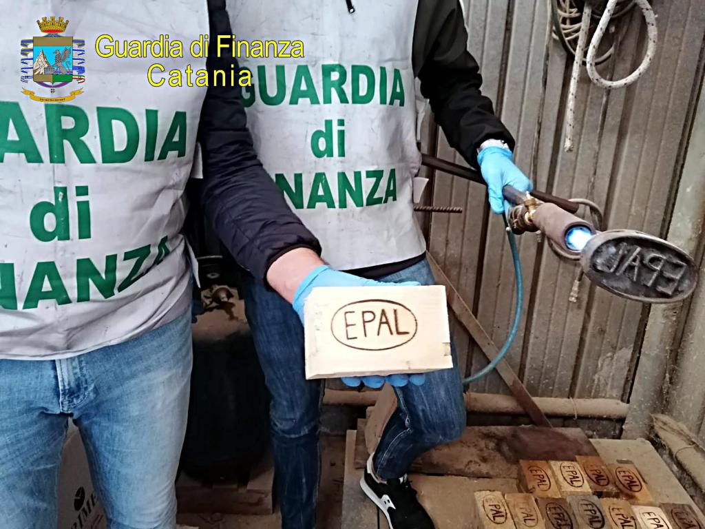 Circa 8.000 pallet realizzati con marchi di ‘certificazione’ falsificati sono stati sequestrati dalla Guardia di finanza del comando provinciale di Catania durante controlli eseguiti in imprese specializzate nella produzione e nella commercializzazione di pedane in legno.