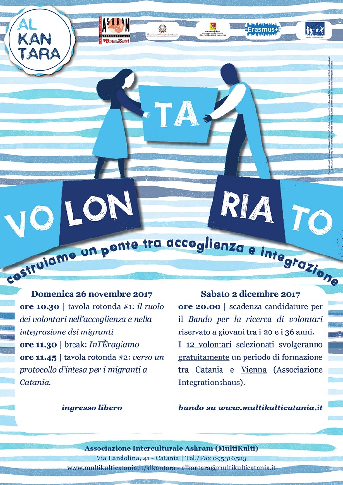 Per questo l’Associazione Ashram (MultiKulti) di Catania, dal 1995 impegnata in attività di dialogo interculturale e progetti di volontariato europeo, ha lanciato “Al Kantara” un progetto per la formazione di 12 giovani siciliani su tematiche relative all’accoglienza e all’integrazione dei migranti.