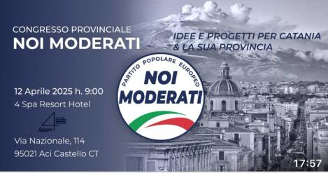 Si terrà sabato 12 aprile alle ore 9 ad Aci Castello nel Catanese presso il 4 Spa Resort Hotel il primo congresso su base provinciale di Noi Moderati.