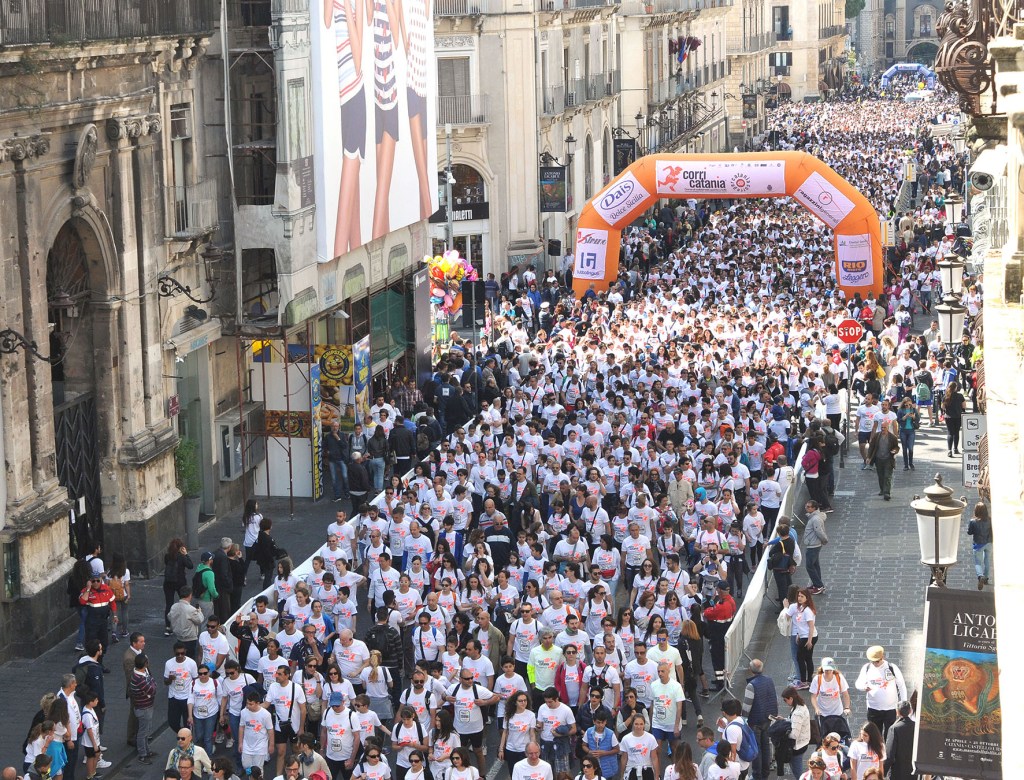 Lo slogan “Catania corre per Catania” ha davvero preso forma e anche il sole ha dato il benvenuto alle migliaia di partecipanti arrivati da Catania e da tutta la Sicilia che, con la maglietta bianca con l’omino arancio fluo simbolo della manifestazione, si sono riversate nel cuore della città, lungo i 5 km del percorso, pronte a vivere con entusiasmo e tanto coinvolgimento la domenica di Corri Catania.