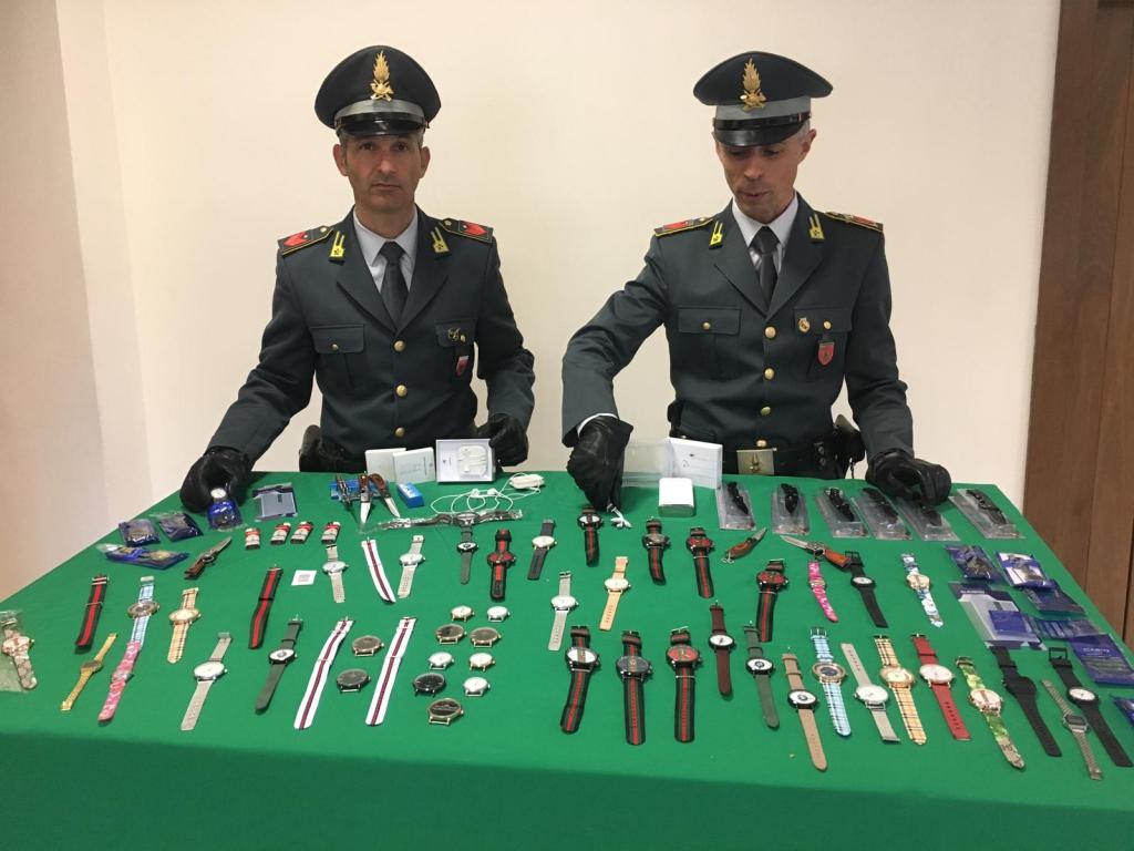 Durante dei controlli sono stati trovati oltre 3.700 tra orologi e supporti elettronici con noti marchi contraffatti, e oltre 250 coltelli a serramanico, che per le loro caratteristiche tecniche, lunghezza della lama ed impugnatura, sono considerati armi bianche tese ad offendere.