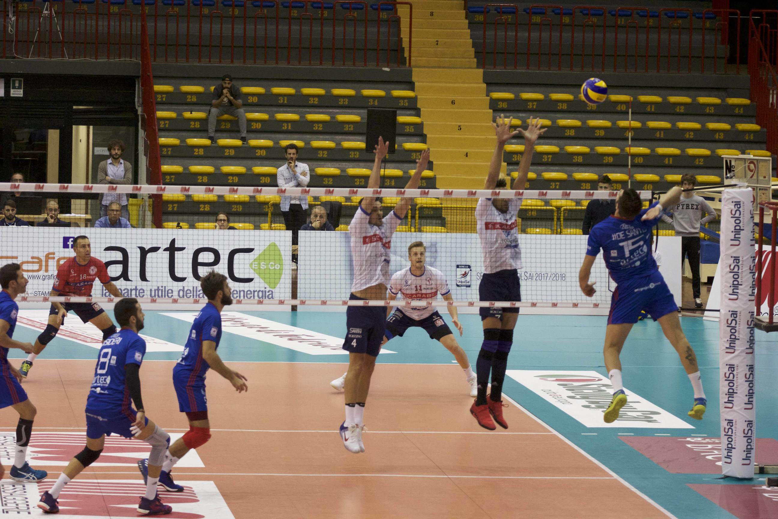 La seconda frazione di gioco inizia in pareggio (10-10). Gli stranieri avversari mettono in difficoltà la ricezione rossazzurra (19-22). Un attacco di Bonacic riaccende le speranze ( 21-23). E’ Padura Diaz a consegnare il set point, ed è una palla out rossazzurra a consegnare il set agli ospiti (21-25).