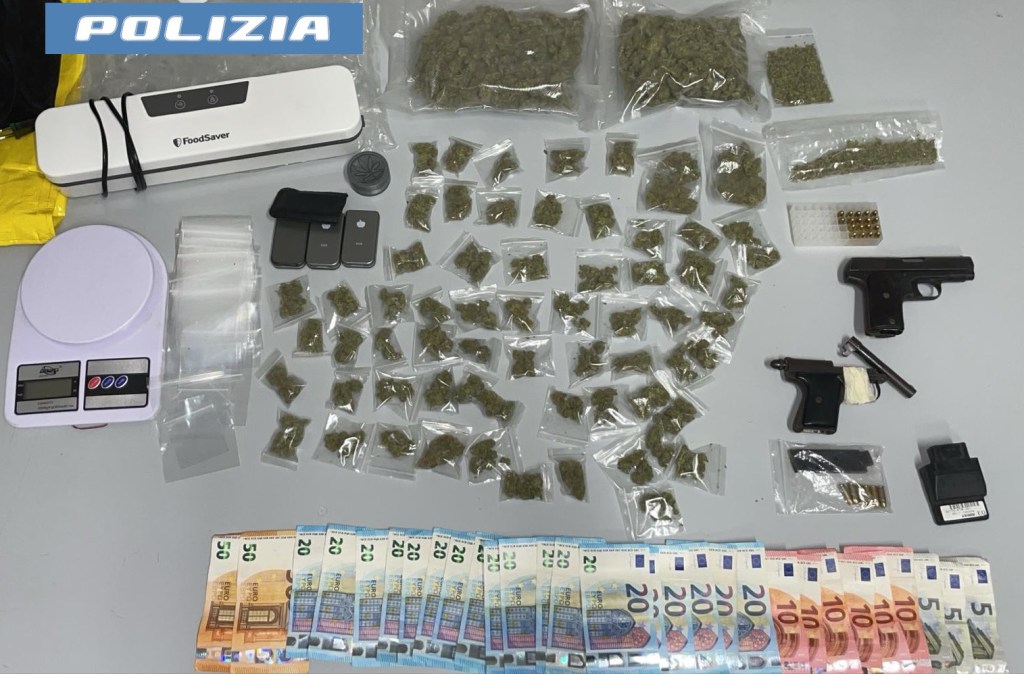 Teneva una pistola con matricola abrasa nella sua camera da letto, mentre aveva nascosto un’altra arma clandestina e quasi 300 grammi di marijuana nel terrazzino di casa.
