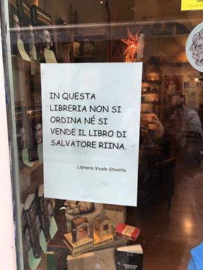 “In questa libreria non si ordina né si vende il libro di Salvatore Riina”. È questo il cartello che appare in una via di Catania.