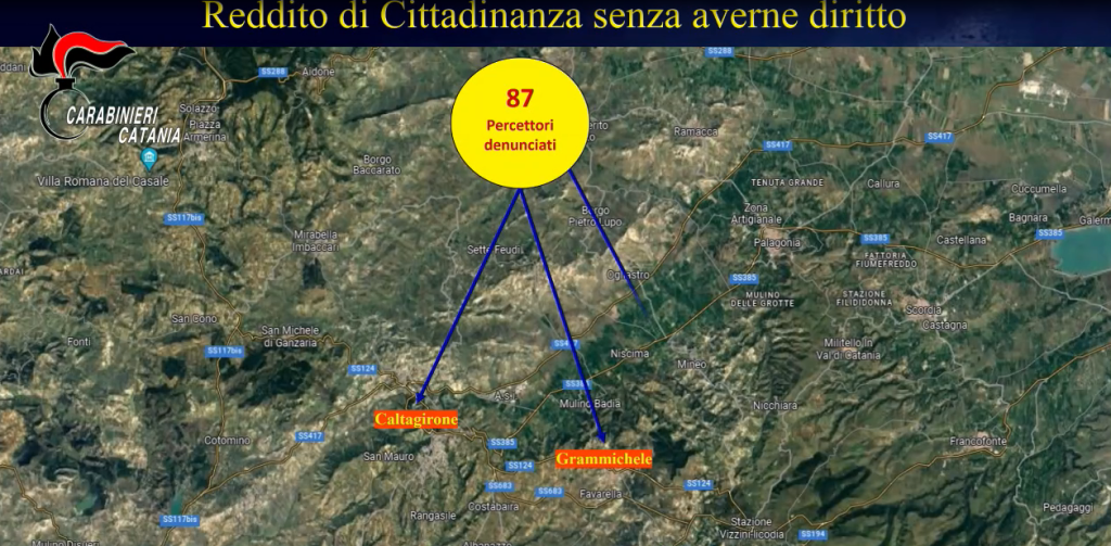 I controlli dei carabinieri del comando provinciale di Catania avviati dal 2021 in collaborazione con il Nucleo ispettorato del lavoro hanno fatto emergere, con quelli denunciati alla Procura di Caltagirone, di individuare e deferire complessivamente circa 1.000 presunti casi di illecita percezione del reddito di cittadinanza. Secondo stime degli investigatori il danno allo Stato ammonterebbe così, nel quadriennio 2019-2022, a circa 7milioni di euro. Tra i beneficiari denunciati 80 che avevano personalmente richiesto ed ottenuto il beneficio pur essendo stati condannati, con sentenze passate in giudicato, per associazione mafiosa, oppure omettendo di comunicare che all’interno del proprio nucleo familiare, o loro familiari