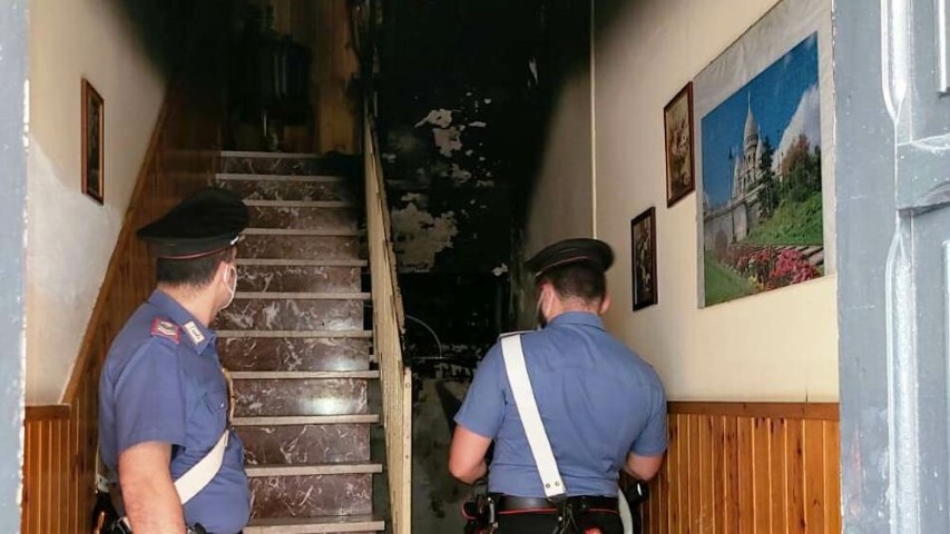 L’incendio è stato contenuto da militari dell’Arma con mezzi di fortuna, che hanno portato fuori anche due bombole di gas, e poi spento del tutto dai vigili del fuoco. Sono in corso gli accertamenti per risalire alle origini del rogo.