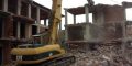 A San Giorgio il palazzetto viene giù pezzo dopo pezzo, nell’incessante lavoro della mega tenaglia meccanica che sbriciola cemento e ferro, bucando e distruggendo centinaia di forati di argilla rossi.