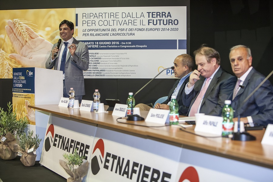 “L’agricoltura italiana e siciliana si caratterizzano per l’eccezionale qualità delle produzioni, basti pensare ai 281 DOP e IGP che possiamo vantare e che pongo l’Italia leader in Europa, ma vi sono delle criticità che bisogna superare anche attraverso la nuova programmazione europea”. – così l’on. Salvo Pogliese, parlamentare europeo di FI-PPE, ha esordito nel suo intervento di apertura del convegno “Ripartire dalla terra per coltivare il futuro” organizzato insieme al deputato regionale di Forza Italia Alfio Papale che si è svolto questa mattina presso il centro fieristico Etnafiere a Etnapolis.