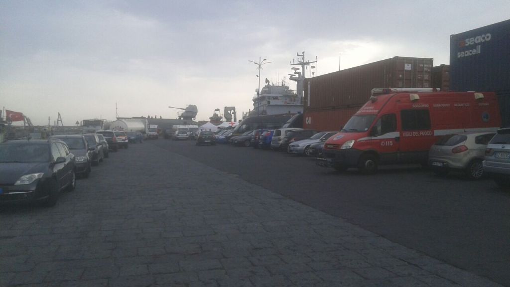 La nave della Marina Militare è approdata poco dopo le 17 e sono scattate immediatamente le operazioni di assistenza da parte di forze dell’ordine, croce rossa e organizzazioni umanitarie.