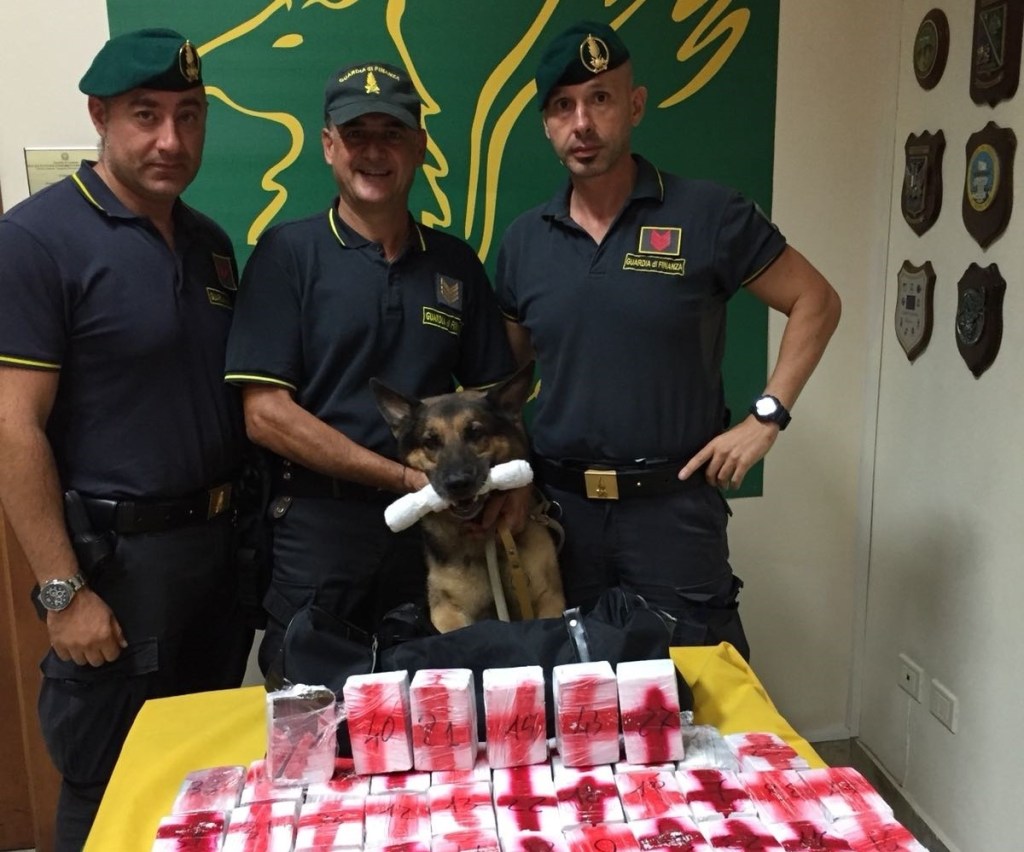 LO CASTRO, che viaggiava unitamente ad un altro soggetto (un catanese trentaduenne), sin dalle prime domande di rito poste dai Finanzieri circa la provenienza e la destinazione della merce, palesava chiari segni di nervosismo. Le conseguenti attività di perquisizione del mezzo consentivano di rinvenire, occultati in un borsone posizionato in un vano dell’automezzo riservato alla custodia dei pallet, 49 panetti assicurati con nastro adesivo bianco, contenenti 25 kg circa di sostanza stupefacente che, all’esito dell’analisi speditiva, è risultata essere hashish.