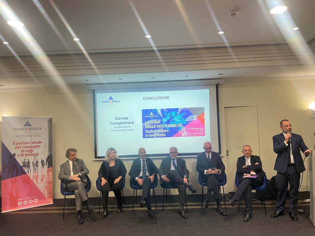 Manageritalia Sicilia ha lanciato il primo di cinque incontri dedicati alla sostenibilità, dal titolo “Verso un futuro sostenibile”, presso l’NH Hotel Parco degli Aragonesi di Catania. L’iniziativa, coordinata dal vicepresidente Davide Frangiamore, ha riunito oltre 120 partecipanti tra istituzioni, aziende e giovani universitari.