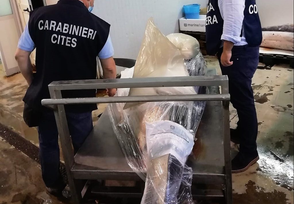 Nel corso di un’operazione del Nucleo Carabinieri Cites di Catania e della Capitaneria di Porto di Catania, è stato trovato, all’interno di una cella frigorifera di un commerciante all’ingrosso di pesce, presso il MAAS di Catania, la carcassa, priva di testa di un esemplare di squalo Mako.