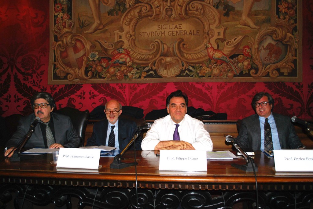 Il quarto d’ora accademico se l’è concesso solo Francesco Basile. Gli altri due aspiranti rettore – Enrico Foti e Filippo Drago – hanno aspettato “al caldo” dell’aula magna di Palazzo Università, prima di iniziare il confronto elettorale con i rappresentanti degli studenti.