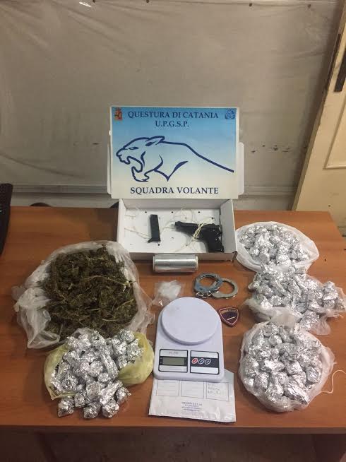 E’ lì che gli agenti delle Volanti, durante un servizio antidroga nel quartiere periferico, hanno trovato al quinto piano, all’interno del vano ascensore due buste in cellophane contenenti una pistola Beretta calibro 7,65 con la matricola abrasa fornita di caricatore e munizionamento e circa 500 grammi di marijuana.