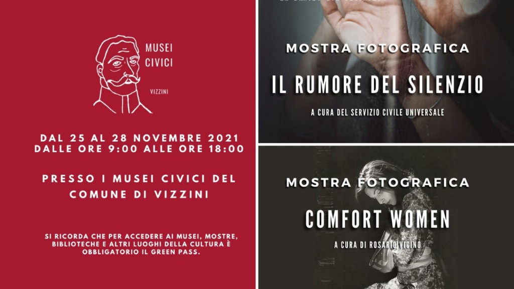 I Musei Civici di Vizzini, in occasione della Giornata Internazionale per l’eliminazione della violenza contro le donne, ospiteranno dal 25 al 28 novembre, due mostre fotografiche. Queste si intitolano “Il rumore del silenzio” e “Comfort Women”.