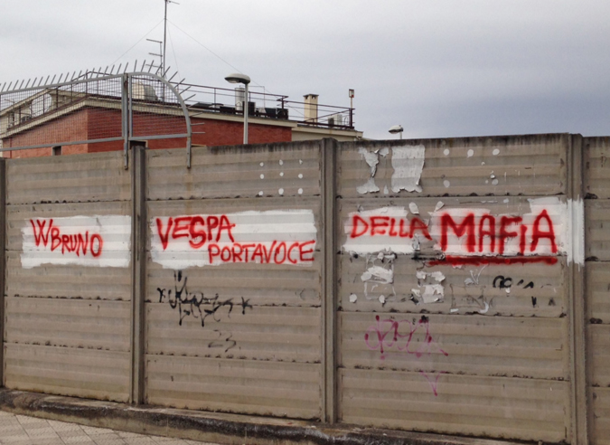 E’ apparsa questa mattina davanti alla sede della Rai di Catania la scritta ‘W Bruno Vespa portavoce della mafia’.