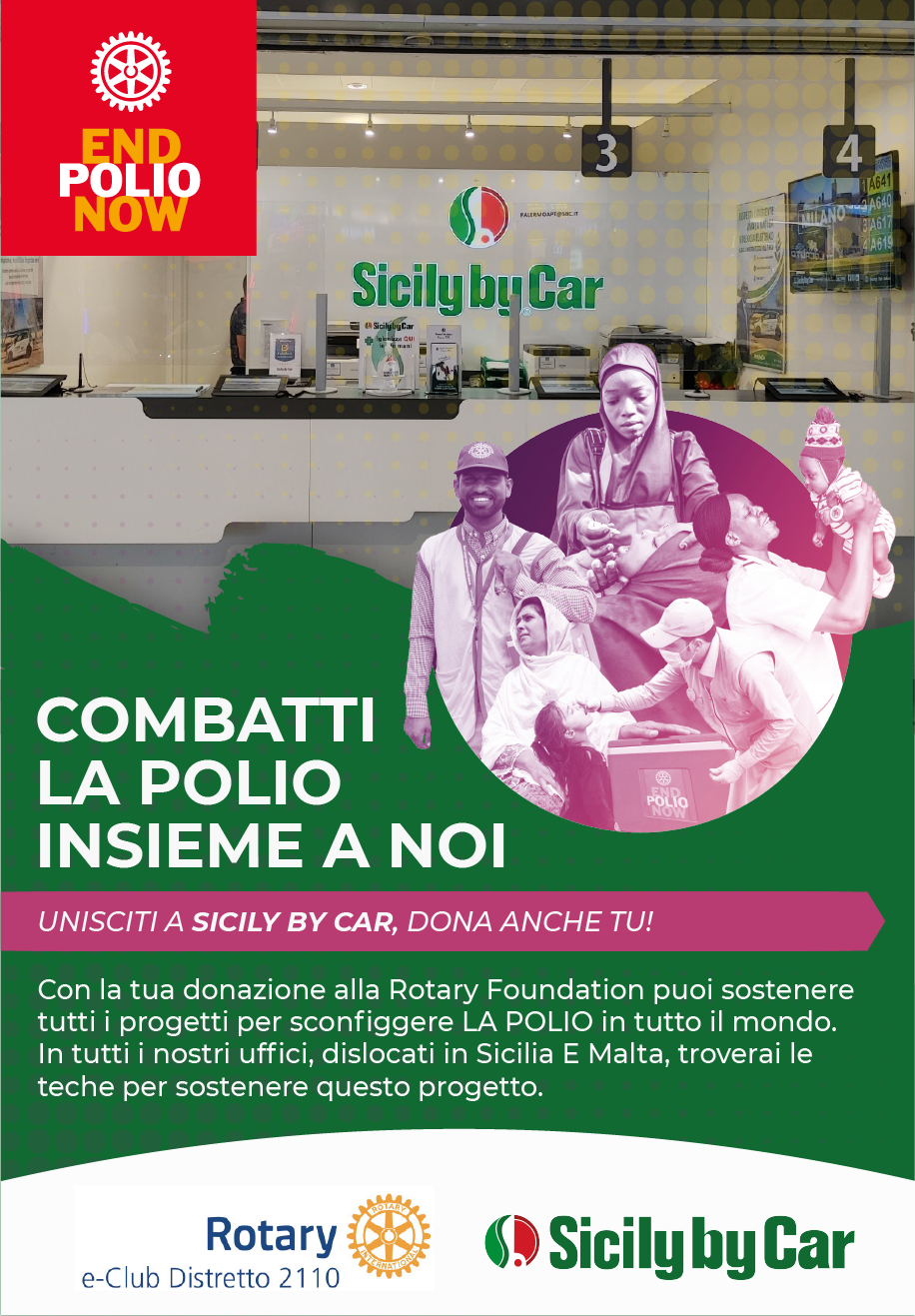 La partnership strategica tra l’e-Club Distretto 2110 e Sicily By Car ha l’ambizioso obiettivo di raccogliere fondi che saranno direttamente utilizzati per sostenere programmi di immunizzazione e iniziative preventive in regioni colpite dalla polio.