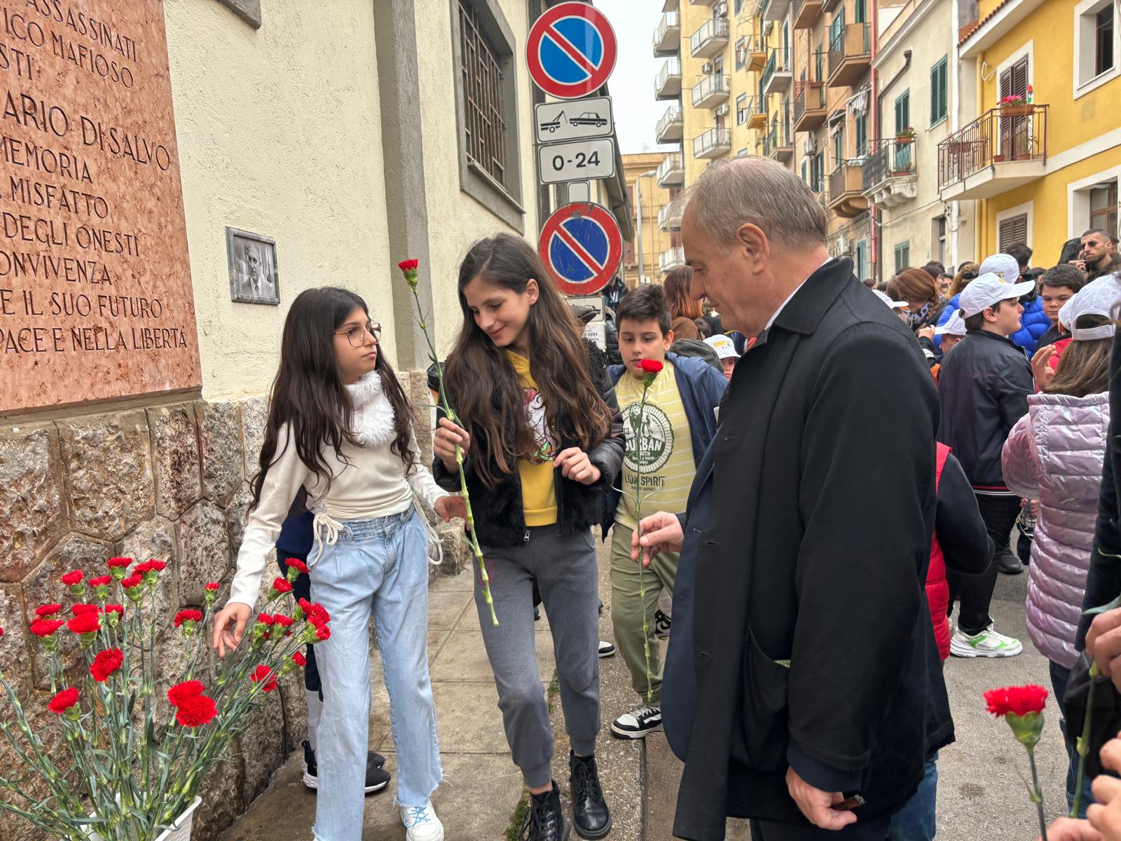Una mattinata di grande gioia, nonostante la ricorrenza non fosse per nulla lieta, conclusasi con la pulitura della lapide e la posa di 42 fiori, così come gli anni che ci dividono da quel tragico giorno in cui la mafia credeva di avere ucciso la speranza e, invece, ha consegnato all’eternità la figura di un uomo che, insieme al suo fidato compagno, ha sacrificato la sua vita per ricordarci che la mafia è un mostro, ma un mostro che possiamo sconfiggere se siano tutti uniti. A sottolinearlo i bambini e ragazzi che oggi hanno gridato e concluso l’evento con un “Viva Pio La Torre”, pieno di passione e speranza. Un’esultazione che è anche monito per non farci arretrare mai.