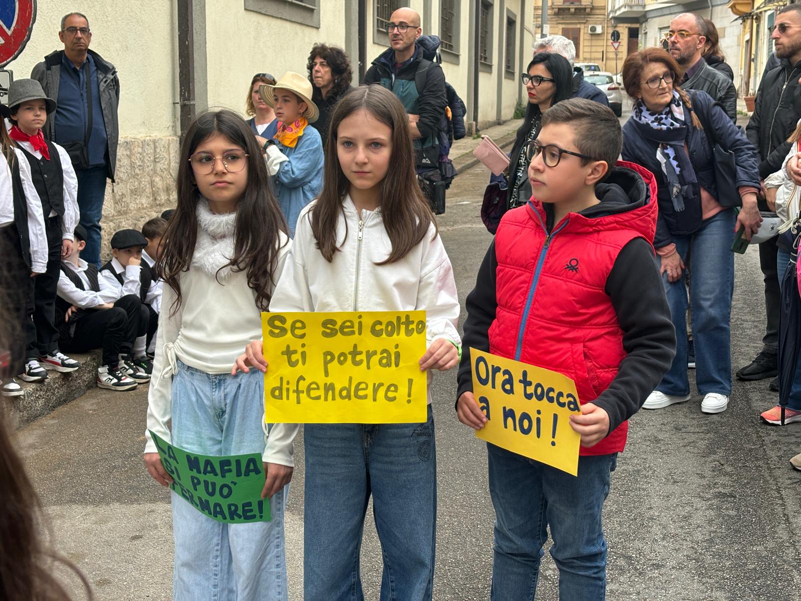 «La mafia si può fermare e la fermeremo», gridano i bambini ricordando, come del resto diceva lo stesso La Torre, che «se sei colto, ti puoi difendere».