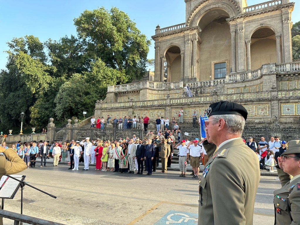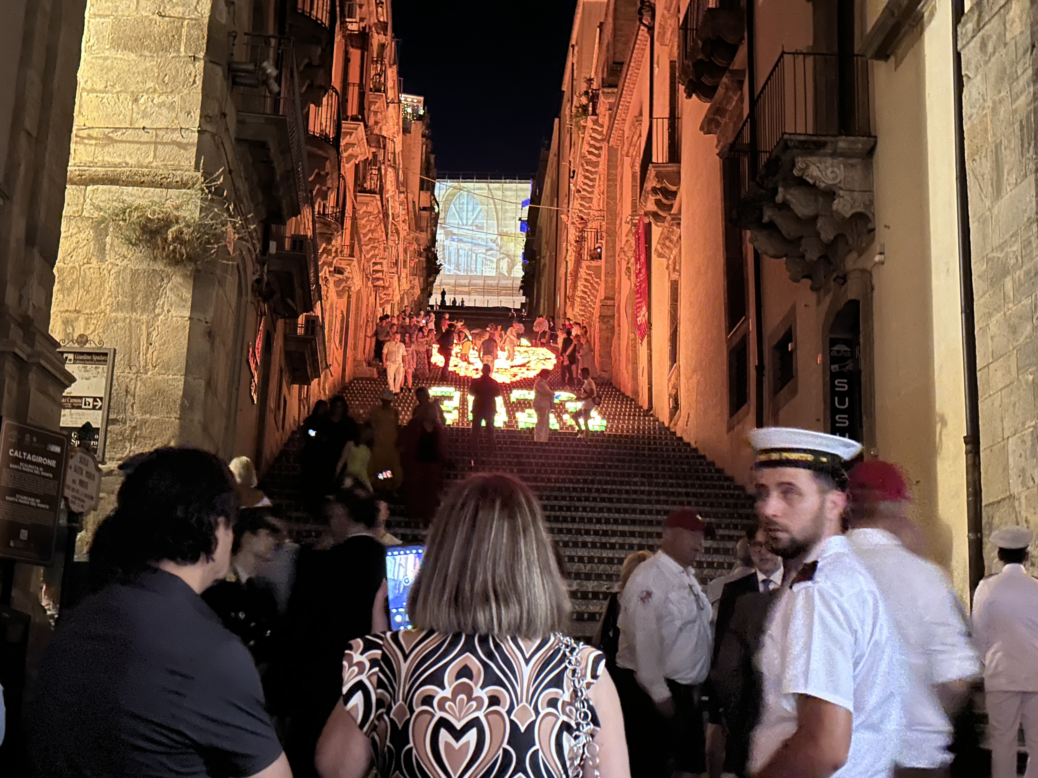 CALTAGIRONE. 17 luglio. Una colomba con un ramoscello d’ulivo, formata da centinaia di fiammelle: la Scala di santa Maria del Monte a Caltagirone ieri (16 luglio) è stata illuminata con il simbolo universale della pace per ricordare l’ottantesimo anniversario dello Sbarco, 1943-2023; simbolo ripreso dal Forum internazionale Peace, Security & Prosperity, ciclo di eventi di commemorazione dei caduti, senza divisione di bandiera. Le immagini raccontano una folla di gente intenta ad accendere gli stoppini, con in testa il generale di divisione Maurizio Angelo Scardino, comandante dell’Esercito in Sicilia e il capitano di vascello Aaron Schumacher, comandante della base aeronavale della Marina americana a Sigonella, al fianco del sindaco di Caltagirone Fabio Roccuzzo, dell’assessore alla Legalità Giuseppe Fiorito, di Steve Gregory, che ha ideato il primo Wrap (Walking for Remembrance & Peace) da Pachino ad Adrano, seguendo il percorso delle truppe canadesi durante l’avanzata del 1943; del sindaco di Vittoria, Francesco Aiello, dell’assessore alla Pubblica Istruzione di Comiso, Giuseppina Cubisino, e di Tony Loffreda, primo senatore canadese di origini italiane che sta partecipando alla marcia.