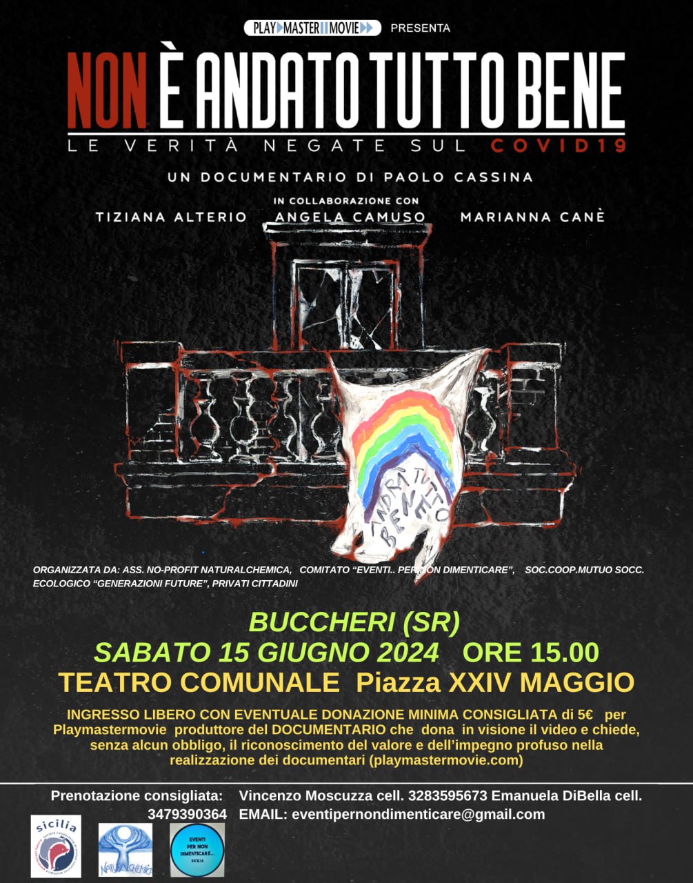 Dopo il successo delle 6 anteprime nazionali, il docu-film denuncia “Non è andato tutto bene- Le verità negate sul Covid 19”, del regista Paolo Cassina, già firma di “Invisibili”, sulle vittime del vaccino, arriva a Buccheri (SR), sabato 15 giugno, ore 15.00, al Teatro Comunale, in piazza XXIV Maggio. Durata 175 minuti. L’evento è organizzato dall’associazione no profit Naturalchemica, dal comitato Eventi…per non dimenticare e dalla società coop mutuo soccorso ecologico Generazioni Future.