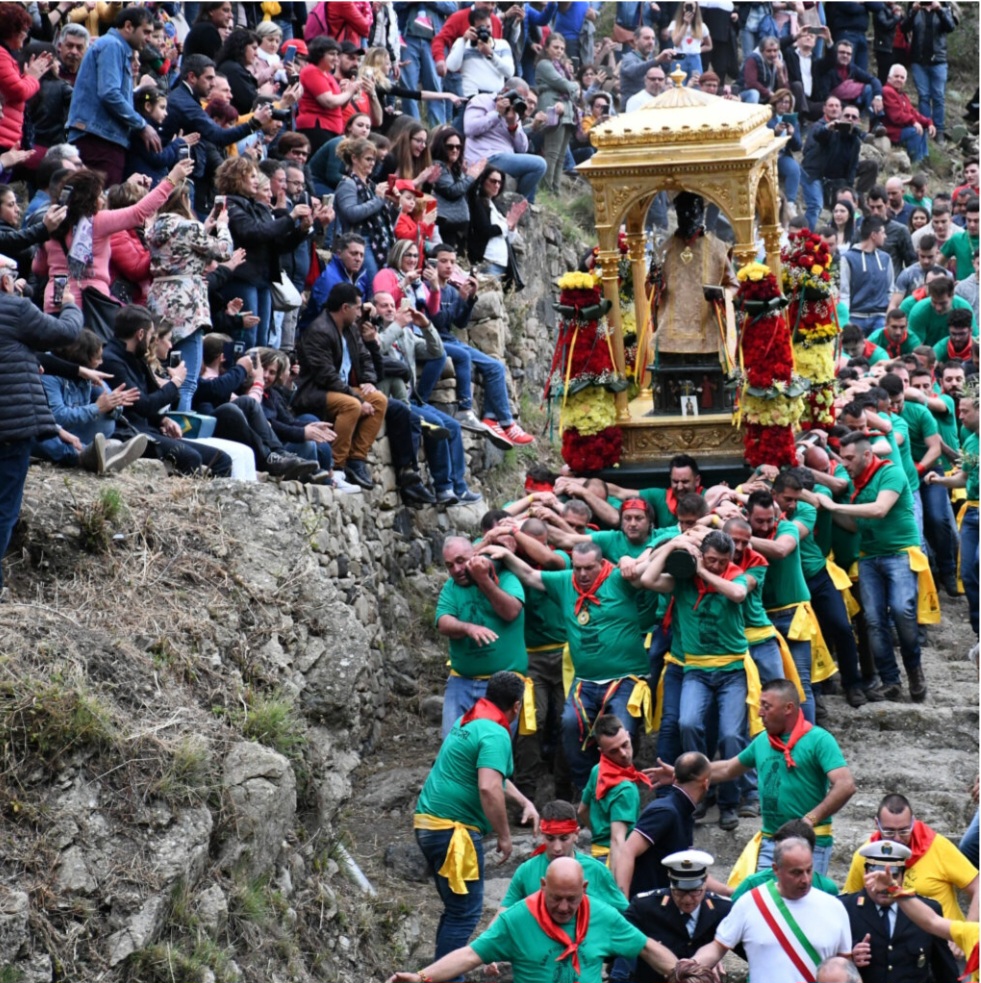 Si inizia sabato 18 maggio, alle ore 18.30, con la “calata”, la tradizionale processione del Santo, portato a spalla dalla Chiesa del SS. Crocifisso fino alla Chiesa Madre, percorrendo l’antica strada che porta al Castello di Calatabiano.