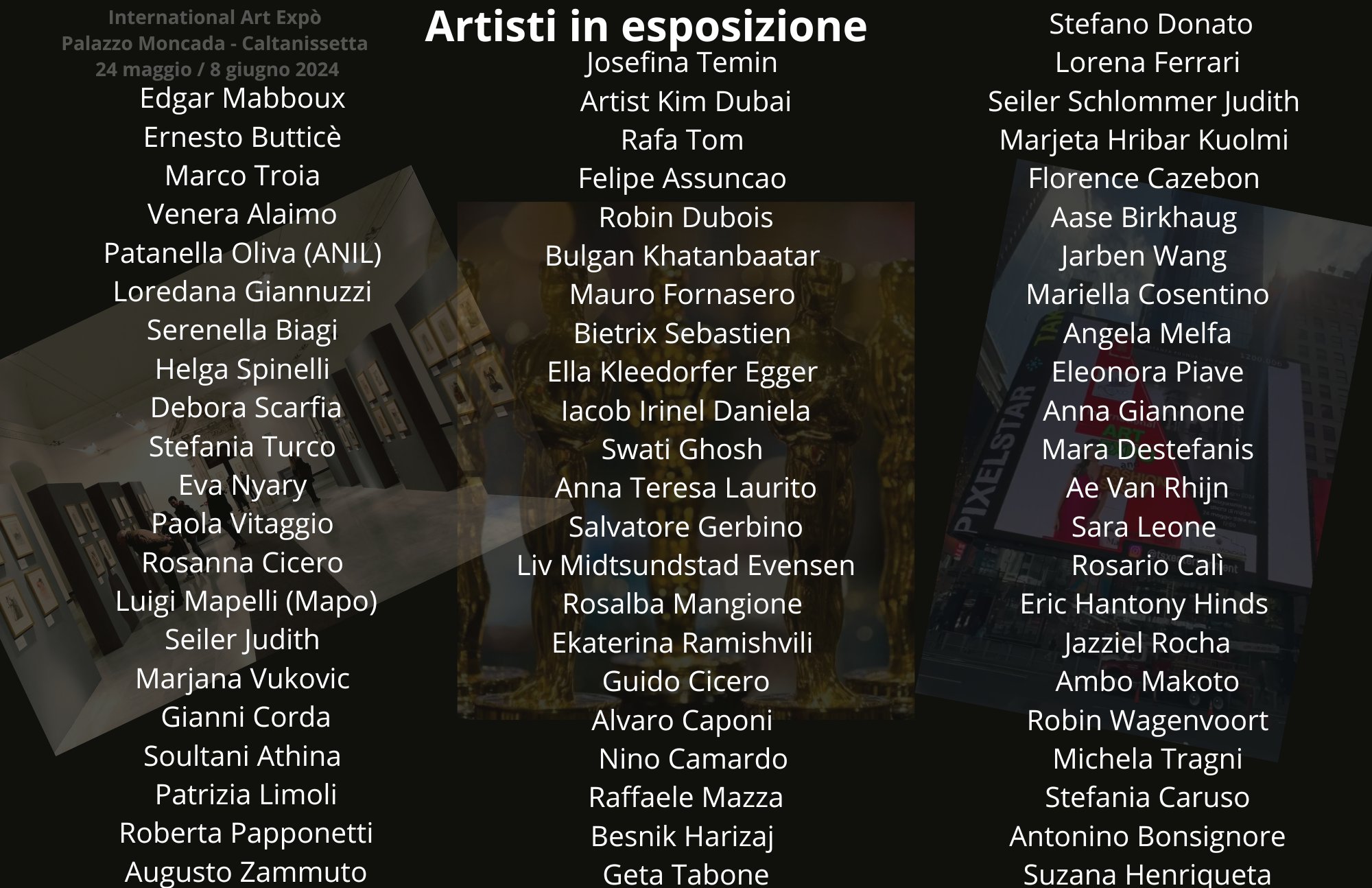 “International Art Expò and Fashion Show” è il titolo della manifestazione in programma a Caltanissetta, negli spazi del bellissimo Palazzo Moncada, edificio storico situato in largo Barile dove, a partire dalle 17:00, prenderà il via la mostra che vede la partecipazione di artisti provenienti da tutta l’Italia, ma anche dall’estero: Svizzera, Francia, Austria, Croazia, Ungheria, Svezia, Russia, Paesi Bassi, Messico, Dubai, Germania, Romania, Norvegia, Taiwan, Stati Uniti, Spagna e Giappone.