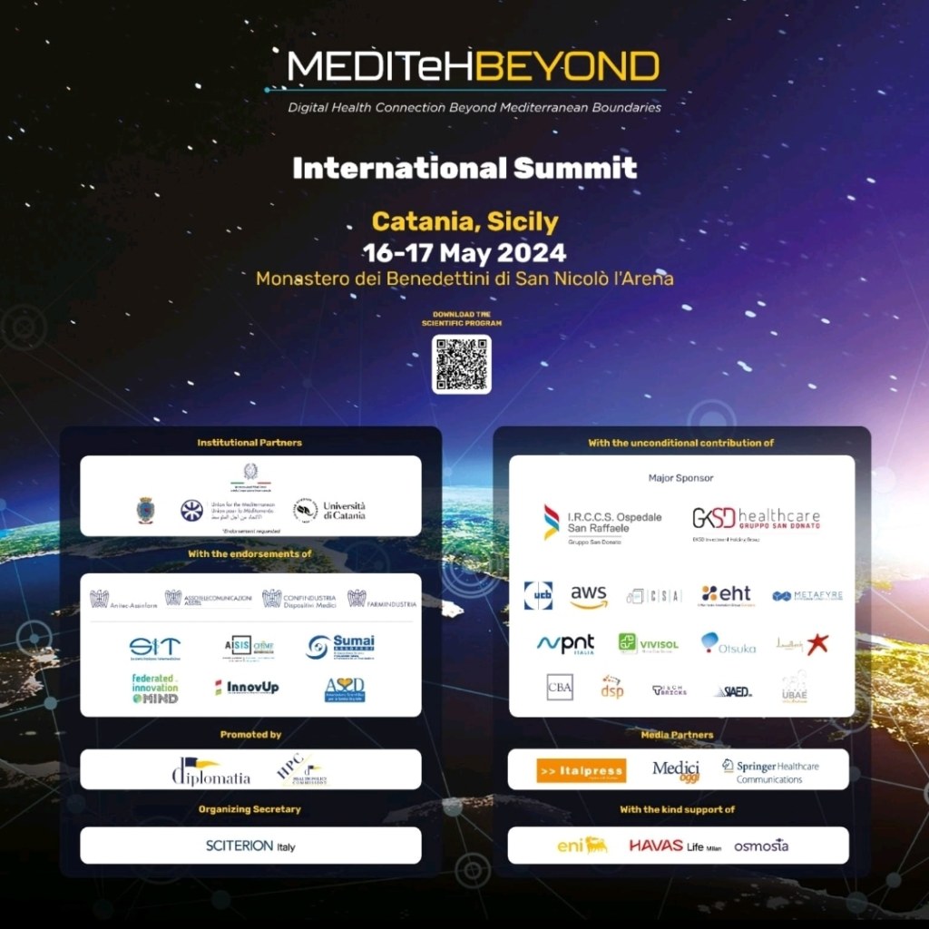 In programma il 16 e 17 maggio, a Catania, al Monastero dei Benedettini, a partire dalle ore 9, MEDITeH Beyond, la scienza medica più vicina alla gente, il Summit Internazionale MEDITeH Beyond (https://meditehbeyond.com/), per sancire la nascita di un network collaborativo dedicato a ricerca e sviluppo in sanità digitale, nell’area del Mediterraneo, Africa e del Medio Oriente. I paesi aderenti sono Albania, Algeria, Arabia Saudita, Cipro, Croazia, Giordania, Grecia, Malta, Marocco, Montenegro, Slovenia, Tunisia e Turchia.