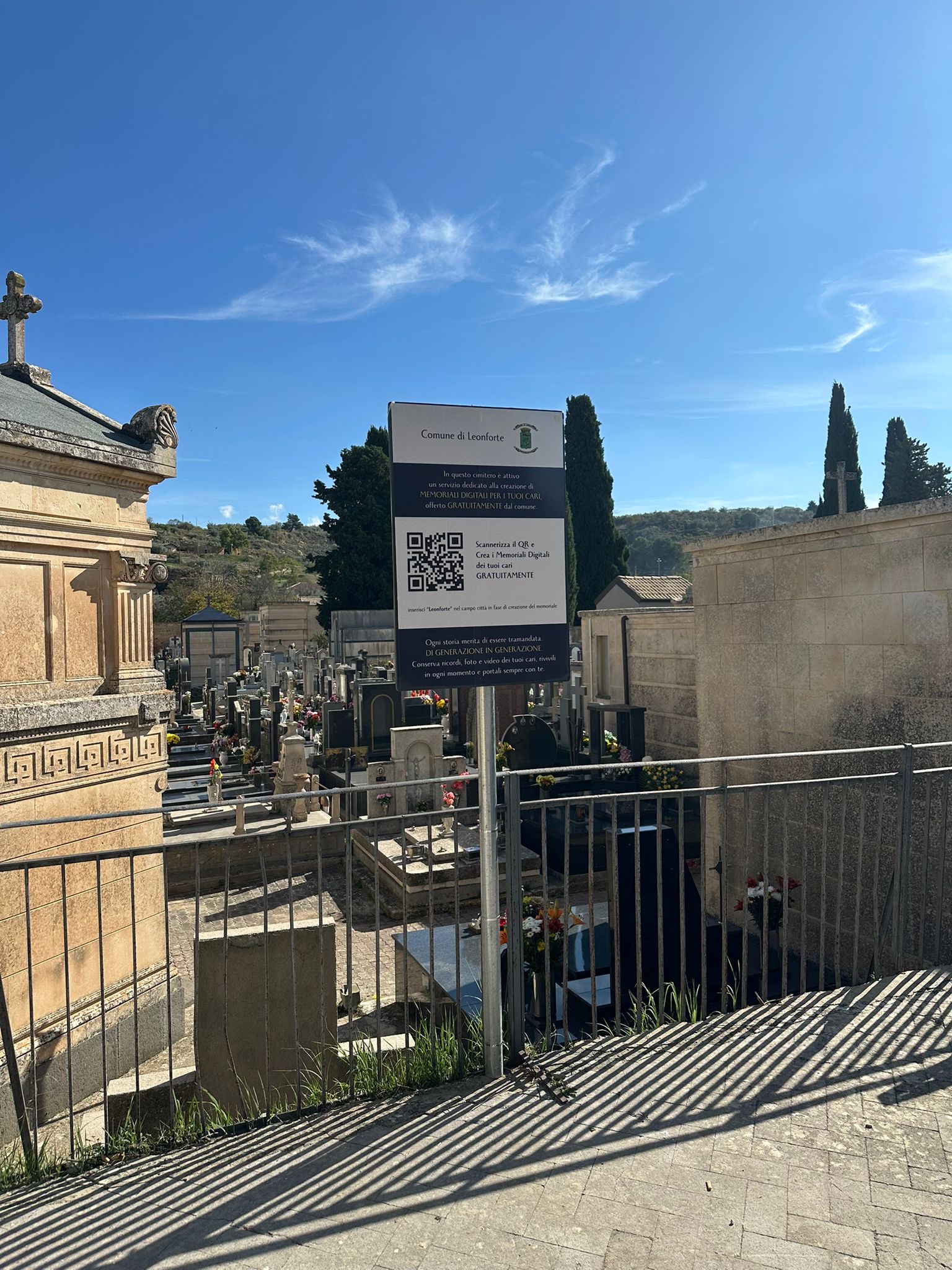 Grazie a una piattaforma digitale e a specifici QR code installati sui tabelloni informativi del cimitero comunale, le famiglie possono creare un memoriale on-line per ogni defunto: una pagina personale con foto, biografia, ricordi e dediche, accessibile inquadrando il codice con il proprio smartphone, anche da parte di chi vive lontano da Leonforte.