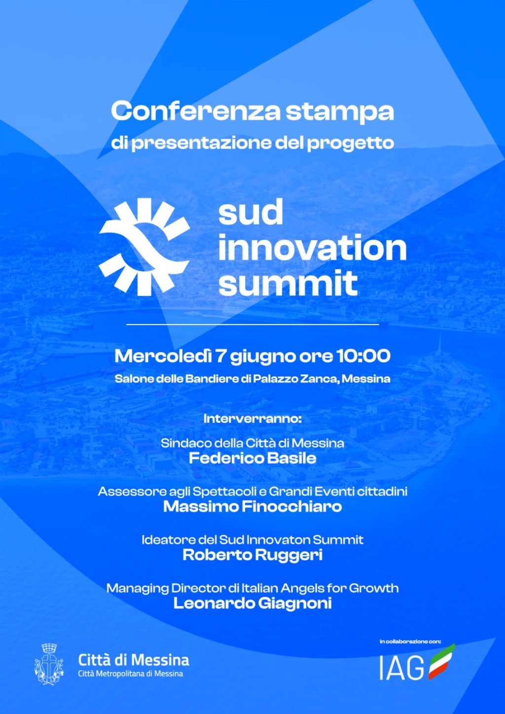 Si svolgerà mercoledì 7 giugno, alle ore 10:00, nel Salone delle Bandiere di Palazzo Zanca, la conferenza stampa di presentazione di Sud Innovation Summit. Si tratta di un evento ideato dall’imprenditore Roberto Ruggeri e realizzato con un team di professionisti in collaborazione con Italian Angels for Growth, tra i protagonisti del venture capital italiano e connettore d’eccellenza di business angels, grandi corporate e startup innovative. L’evento è promosso dal Comune di Messina.