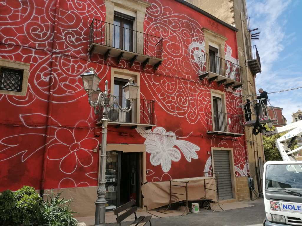 A Mirabella Imbaccari (CT) domani, venerdì 17 maggio alle 13.00 sarà inaugurata l’opera di Street Art che la nota artista polacca NeSpoon ha realizzato in questi giorni in Piazzetta dello Speziale ispirandosi al pizzo a tombolo, lavorazione tradizionale di quest’area della Sicilia, che a Mirabella ha avuto uno dei suoi più importanti centri propulsivi proprio a Palazzo Biscari, oggi uno dei nodi dei Parchi della Bellezza e della Scienza, infrastrutturazione a rete promossa dalla Fondazione Messina, Ente Filantropico.