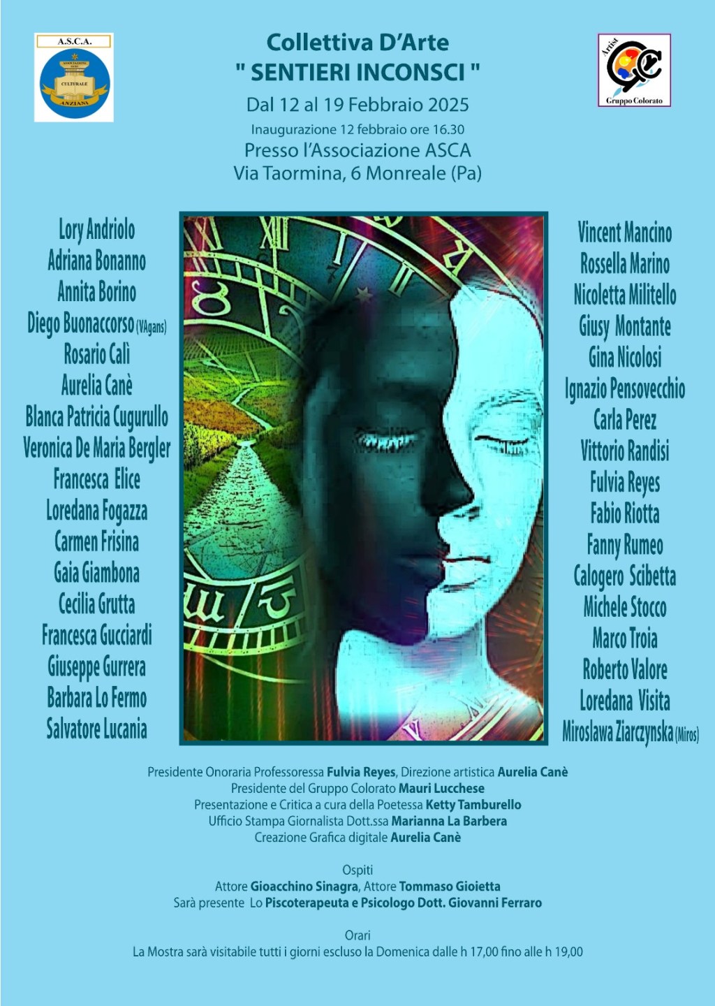 L’inaugurazione si terrà mercoledì 12 febbraio alle 16:30, alla presenza della professoressa Fulvia Reyes e di Mauri Lucchese, rispettivamente presidente onorario e presidente del Gruppo Colorato e del direttore artistico Aurelia Canè, che ha curato anche la creazione grafica digitale dell’evento.