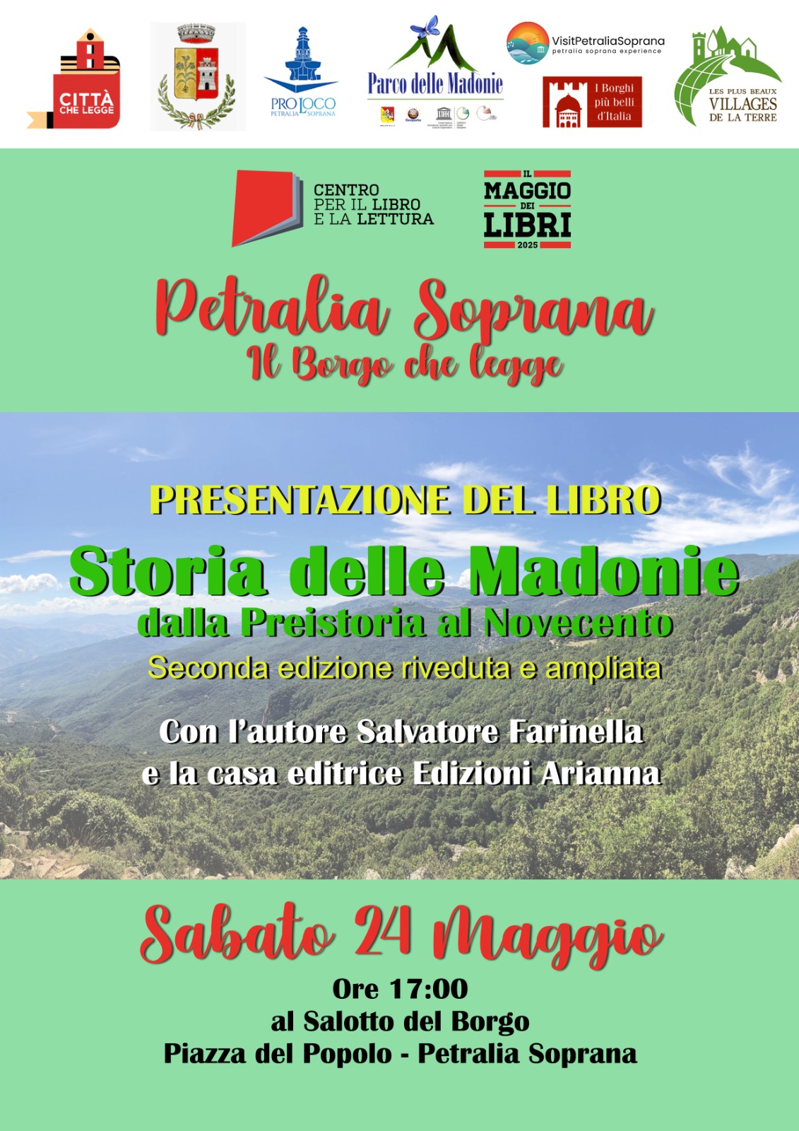 Sabato 24 maggio si apre il sipario alle ore 17:00 in Piazza del Popolo, con la presentazione del volume “Storia delle Madonie: dalla Preistoria al Novecento” di Salvatore Farinella, pubblicato da Edizioni Arianna. L’evento, inserito nel programma nazionale Il Maggio dei Libri 2025, offrirà al pubblico un viaggio affascinante attraverso le epoche che hanno plasmato l’identità delle Madonie. Sarà l’occasione per riscoprire, attraverso la narrazione dello storico, l’evoluzione di un territorio ricco di fascino e memoria.