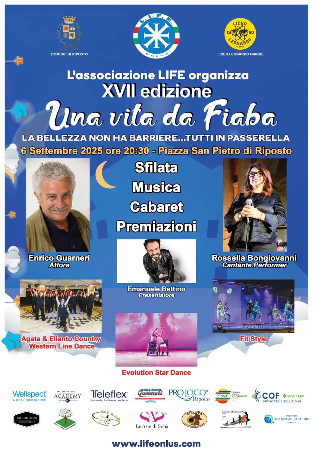 Oggi, 4 settembre, alle ore 10:30, presso il salone comunale del Palazzo di Città di Riposto, si terrà la conferenza stampa di presentazione della XVII edizione dell’evento “Una vita da Fiaba”, promosso dall’Associazione L.I.F.E. con il patrocinio del Comune di Riposto.