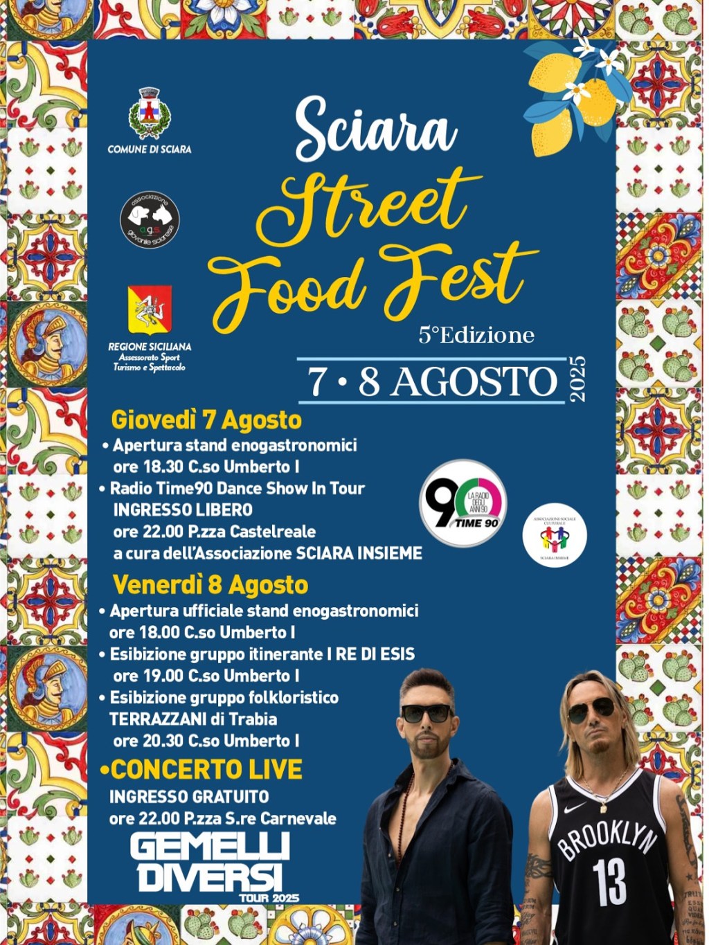 «È un festival che nasce dal basso, dalla voglia dei giovani di Sciara di creare qualcosa di bello per il proprio paese – afferma il presidente dell’Associazione, Salvatore Rocchetta –. Il nostro obiettivo è semplice: far divertire, valorizzare il cibo locale e far riscoprire il piacere di stare insieme in piazza. Ogni anno cresciamo, e quest’edizione promette di essere la più esplosiva di sempre!». Soddisfazione è stata espresso anche dal sindaco di Sciara, la dott.ssa Concetta Di Liberto, che ha così dichiarato: «Questo per noi è molto più di un evento gastronomico. È un momento di identità e di orgoglio comunitario, che valorizza le nostre tradizioni, coinvolge giovani e famiglie, e porta energia positiva al paese. Ringrazio tutti I component dell’Associazione, i volontari e tutti coloro che renderanno unica questa grande festa». A rendere ancor più special questa edizione, il concerto della boyband che ha fatto cantare intere generazioni di ragazzi, molti dei quali oggi adulti: I Gemelli Diversi.